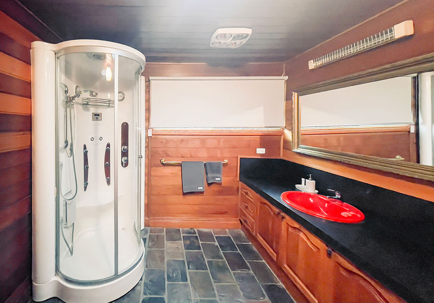 A full size 4 bedroom house with recycle air conditioning, 2 QS beds, 2 KS single beds and 4th bedroom has two sets of bunk beds to sleep 4. The house is totally self-contained with wood fire, double spa bath, big LED TV, DVD player and a fully equipped kitchen and laundry.