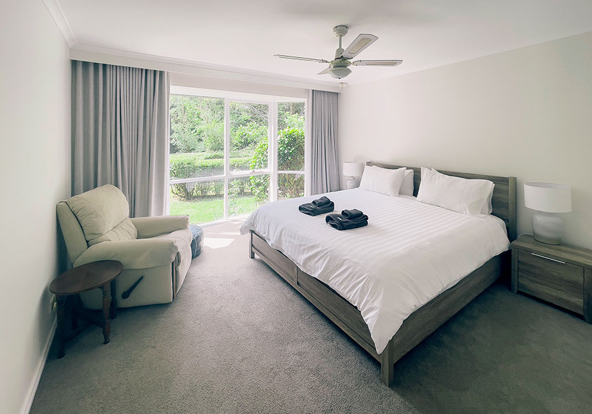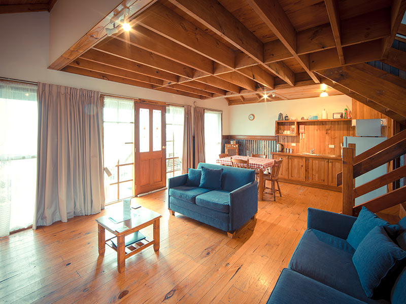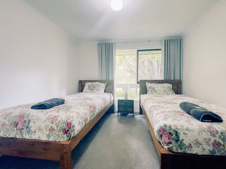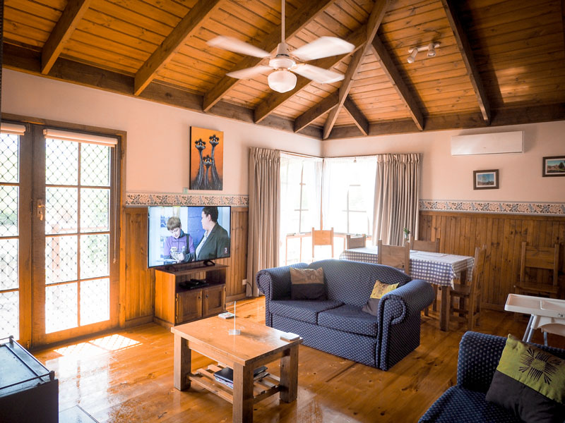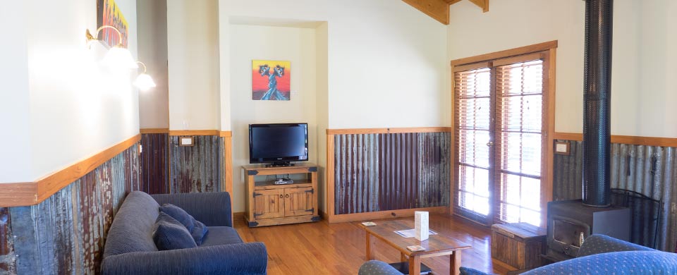 Two bedroom self contained cottages with recycle air conditioning, QS bed and 2 King single beds which, if preferred, can be joined to become a King double bed for couples. Includes three-corner spa, wood fire, brand new 50" Panasonic LED TV, DVD player and Panasonic Bluetooth HiFi System, fully equipped Kitchen and Laundry.