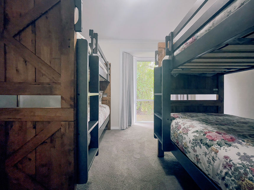 A full size 4 bedroom house with recycle air conditioning, 2 QS beds, 2 KS single beds and 4th bedroom has two sets of bunk beds to sleep 4. The house is totally self-contained with wood fire, double spa bath, big LED TV, DVD player and a fully equipped kitchen and laundry.