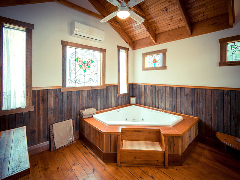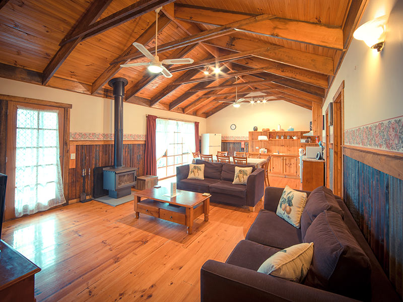 Sanctuary Park Cottages provide accommodation that is unique and private. We have 6 cottages on offer each suited for that unique getaway. The Loft is perfect for that romantic retreat for two, whilst our other cottages offer both two and three bedroom formats, beautifully set on the 20 acre property. Tastefully decorated in an Australian theme making use of natural woods and recycled materials, the Cottages are fully self contained and appointed with all essential facilities. Each cottage offers Queen size beds in all main bedrooms and single beds in the additional bedrooms. Luxurious spa baths, recycle air conditioning, fully equipped kitchens and laundries, large LED Tvs and DVD/CD players are all standard in each spacious cottage. And of course a fully functional wood fire for you cozy up on those cool nights is in each one of our lovely cottages.