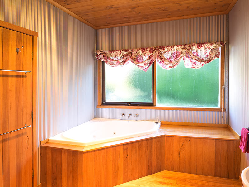 Spectacular multi level cottage with recycle air conditioning. Upstairs, the main bedroom has a four poster bed and ensuite. On the mezzanine level is a lovely three-corner spa bath surrounded by leadlight windows and candles. Ground floor has a fully equipped kitchen, lounge, wood fire, brand new 48" Sony LED TV, DVD player and Panasonic Bluetooth HiFi System, .